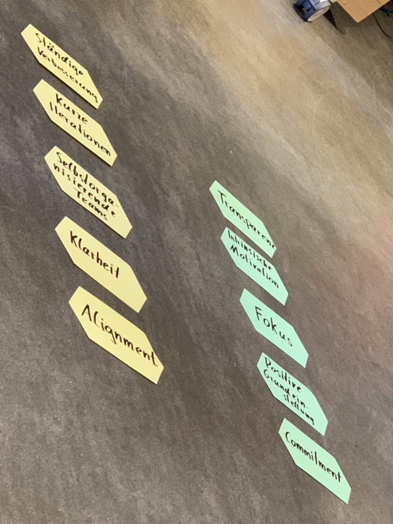 Nun aber zu OKR, Objectives and Key Results heißt die Management-Methode, die Google erfolgreich gemacht hat. Angeblich hilft sie zu fokussieren und macht Mitarbeiter glücklicher. Das wollte ich genau wissen und habe mir einen Workshop bei HelloAgile gebucht. Nachdem ich den Zertifikatskurs zum Scrum Master so mega fand, musste ich die Jungs einfach wieder buchen! Wunderbarer Nebeneffeffekt des Workshops war die Location, nämlich der funktionale und schicke Showroom von vitra in Frankfurt.