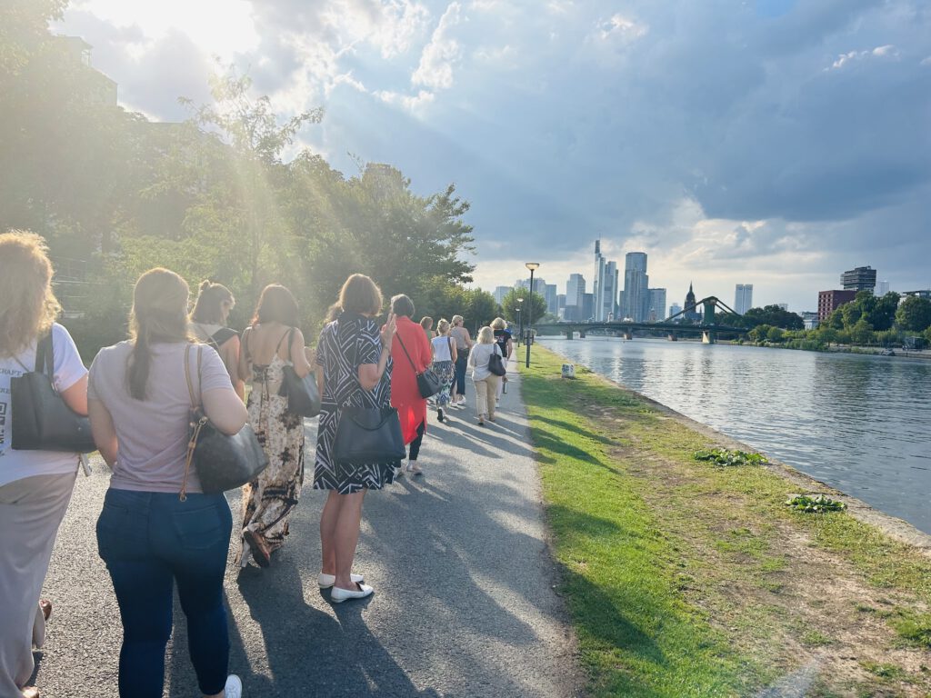Begeistert bin ich weiterhin vom 1stRow/Women Speaker Foundation-Netzwerk. Die Frauen rund um Regina Mehler, die ich schon sehr lange kenne, sind einfach immer wunderbar. Das Problem war nur bis vor Kurzem, dass die meisten Veranstaltungen in München stattfanden. So habe ich Regina darauf angesprochen und wir haben eine erste Walk & Talk-Veranstaltung in Frankfurt am Römer gemacht. Dort wurde ich von ihr zum Co-Lead für Frankfurt gemacht und bin sozusagen ehrenamtlich für unser schönes Rhein-Main-Gebiet zuständig. Die erste Veranstaltung, die wir gemacht haben, war so großartig. Ich habe mit allen Frauen im Nachhinein noch Kontakt und einige der Kontakte werden sehr regelmäßig gepflegt. Und ich hatte gleich Kathrin Leinweber gefragt, ob sie mich nicht unterstützen möchte und wir das zusammen „wuppen“. Ihre Zusage hat mich echt gefreut und damit gibt es sicher einen weiteren Schub für die Events, die noch kommen. Die nächste Veranstaltung am 3. September war dann größer und damit noch spannender aber auch wuseliger, was mir nicht so zusagt. Ich möchte an dieser Stelle gerne noch mehr Unternehmerinnen sehen. Und das würde auch gut passen.