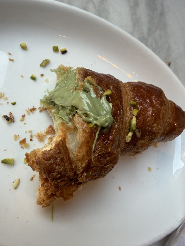 Und manchmal sind es genau die kleinen Dinge: ein warmes Brioche, gefüllt mit Pistaziencreme, irgendwo an einer Bar – und für einen Moment wird alles ruhig.